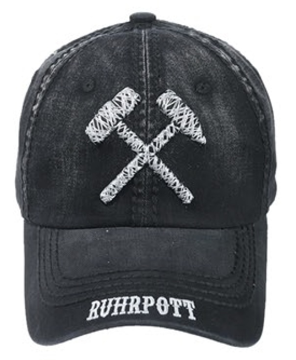 Diese Kappe von Robin Ruth ist ein echtes Statement für jeden Ruhrpott-Fan - das Schlägel und Eisen-Logo symbolisiert das Ruhrgebiet wie kein anderes. Sie ist aus fester schwarzer Baumwolle mit einer weißen 3D-Stickerei. Sie ist durch einen Klettverschluss verstellbar und hat dadurch eine Einheitsgröße, außerdem einen runden Schirm.