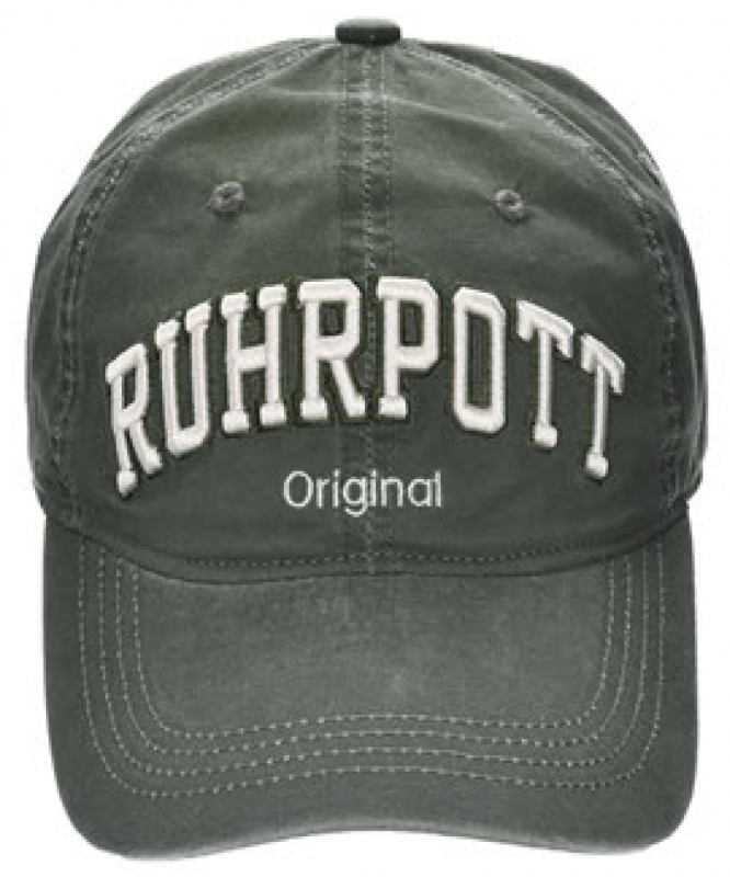 Stylische Schirmmütze vom Kult-Hersteller Robin Ruth, Farbe grau/grün mit aufgesticktem Logo Schriftzug Ruhrpott Original, die Cap ist im Nacken verstellbar.